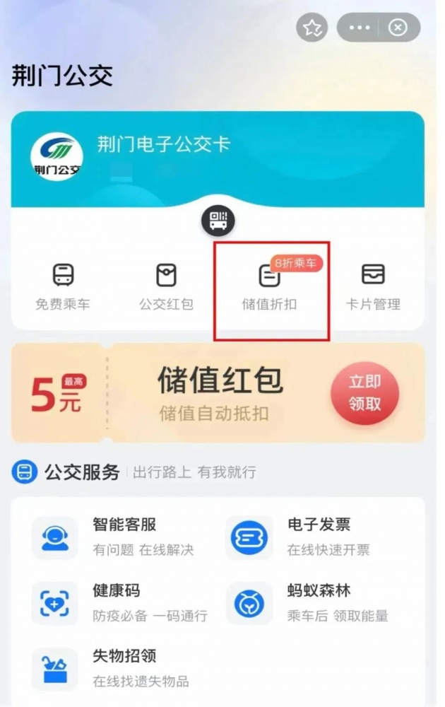 02點擊“荊門公交”,領取“儲值紅包"后點擊【去優(yōu)惠充值】,完成優(yōu)惠儲值