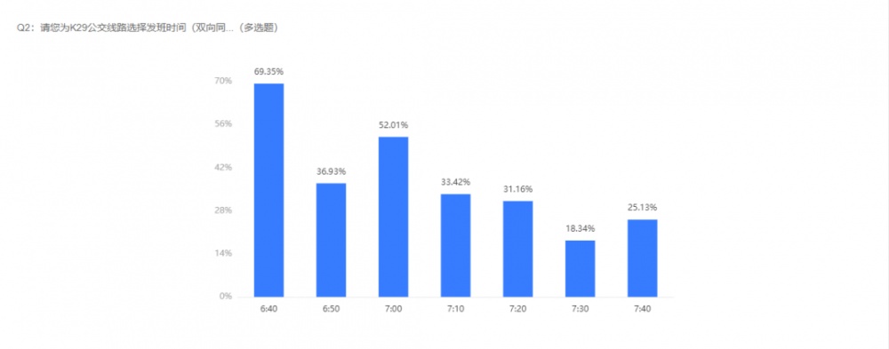 2022年11月18日,市公交集團對《K29公交線路運行方案》進行了問卷調(diào)查,截止2022年11月23日12時,本次問卷調(diào)查結(jié)束。K29公交線路開通時間擬定為2022年11月28日,營運方案以市民投票結(jié)果執(zhí)行。