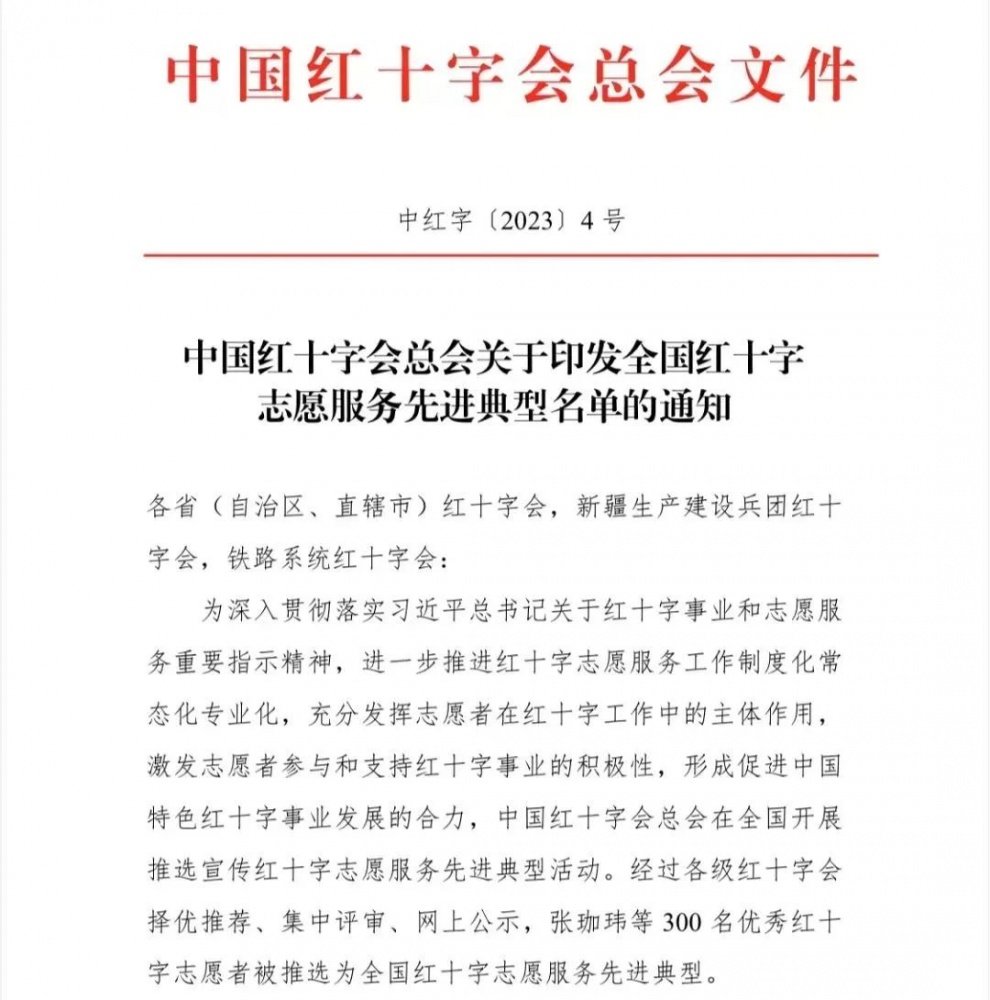 “全國紅十字志愿服務先進典型”