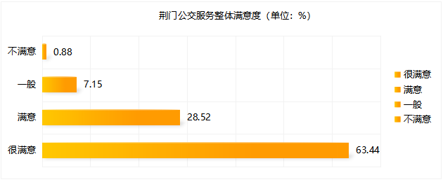 本次調(diào)查共收集有效問卷1471份,623條相關問題及建議。問卷涵蓋公交線網(wǎng)優(yōu)化、文明服務、換乘便捷度、候車時間、乘車舒適度、智能信息建設等多方面內(nèi)容。調(diào)查顯示,參與投票人群年齡結構主要集中在18~59歲,其中以40~59歲為主體。根據(jù)交通運輸部GB/T 36953.2-2018城市公共交通乘客滿意度評價方法,公共交通乘客滿意度指乘客對公共交通服務質(zhì)量的滿意程度,評價程度設置為“很滿意”、“滿意”、“一般”與“不滿意”。問卷顯示荊門公交服務整體滿意度為91.96%。問卷顯示公交線網(wǎng)分布不均、線路不合理、換乘不便捷為主要服務訴求,公交線路分布不均為“不滿意度”投票最高問題;主干道公交優(yōu)先通行權為服務訴求投票最高關注點。 此次問卷調(diào)查,感謝廣大市民乘客的積極參與,市公交集團將結合實際,認真聽取、采納乘客提出的意見及建議,予以改進: 關于線路運營方面,對5路線(圣境山—?;郏?、88路線(東寶碧桂園—楊家橋)、58路線(碧桂園北—漳河新區(qū)政務中心)、59路線(荊楚理工學院—掇刀區(qū)政務中心)早中晚客流高峰期加密營運班次和增設區(qū)間班次,對33路線(楚天學?!d化三路東)、69路線(雙喜小學—園博園東門)、13路線(牌樓—園博園西門)進行線路優(yōu)化,方便沿線居民出行需求;近期擬開通碧桂園翡翠公館至長崗萬人社區(qū)、東寶政務中心至市政務中心公交線路,具體方案正逐步規(guī)劃中。