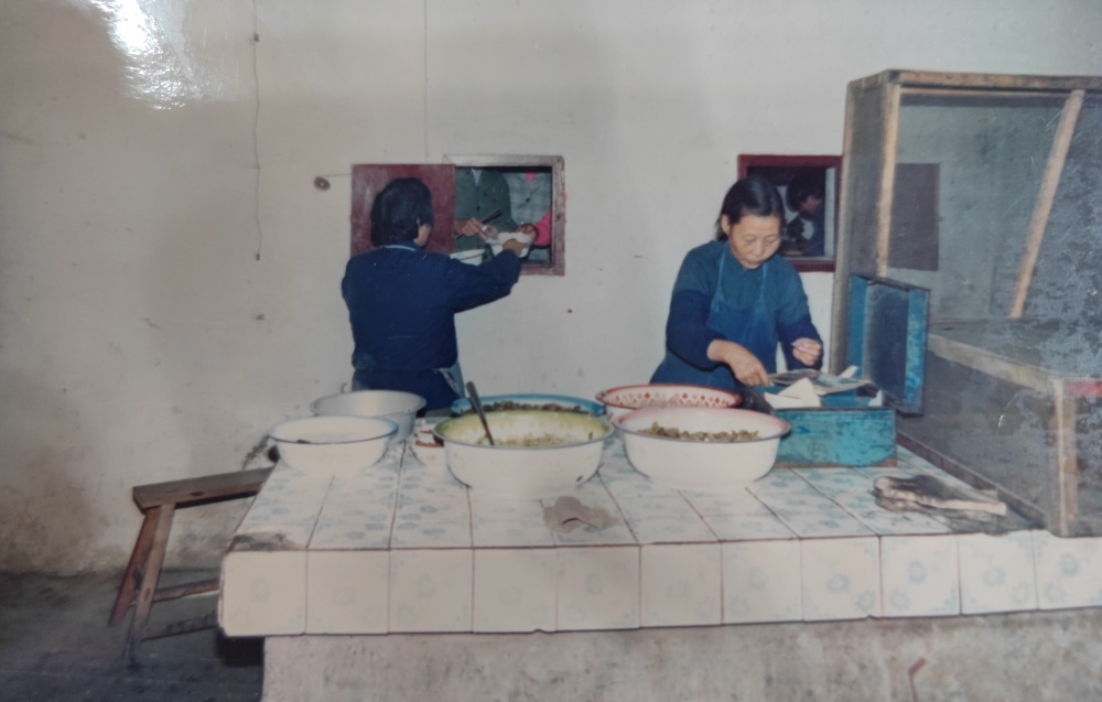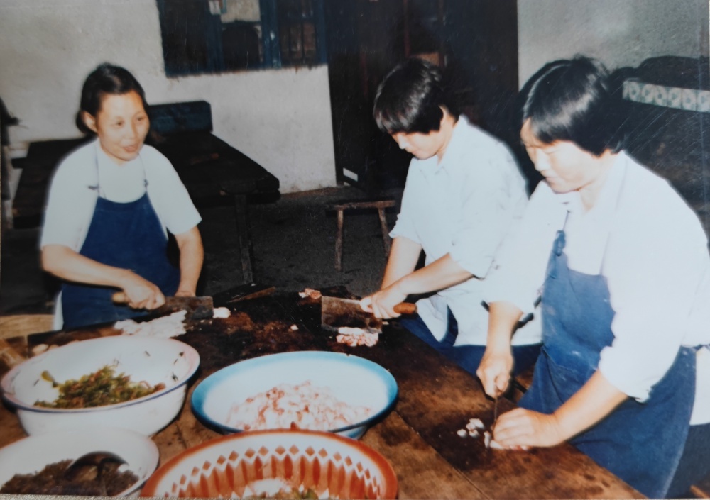 ▲80年代,職工食堂工作場景。每天清晨開始切配食材。