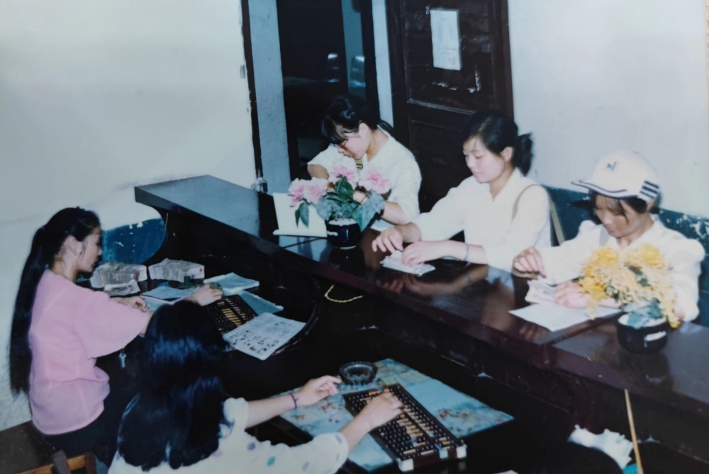 ▲80年代,票務室工作場景。售票員拿著票款到票務室,兌換車票。