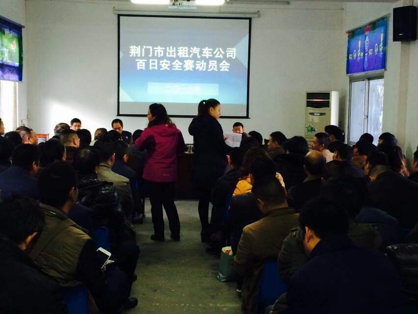 (圖為出租汽車公司百日安全賽動員大會現(xiàn)場)