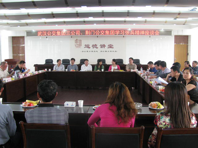 下午,代表們參觀了武漢公交集團三公司GPS總調(diào)度室,詳細(xì)了解了GPS的主要功能和作用。隨后,就學(xué)習(xí)張兵精神進(jìn)行了座談。武漢公交集團三公司黨委書記姚長江介紹了公司整體情況。荊門公交集團副總經(jīng)理張國軍對荊門公交集團的總體情況進(jìn)行了介紹。張兵介紹了自己“三零四一”工作經(jīng)驗(零違章、零事故、零投訴;開好每一趟單邊,進(jìn)好每一個站點,用好每一腳油門,服務(wù)好每一名乘客)和27年來為乘客服務(wù)的感想和體會,駕駛員代表們與張兵進(jìn)行了交流和互動,對日常運營工作中遇到的問題向張兵請教。