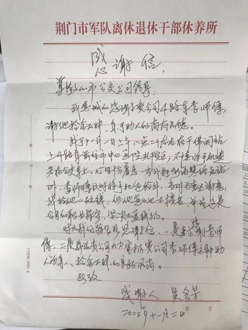 拾金不昧好司機(jī) 乘客寫(xiě)信致謝