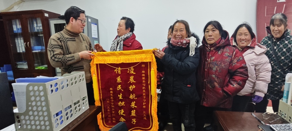 3月3日下午,荊門市掇刀區(qū)麻城鎮(zhèn)菜籃子鄉(xiāng)親代表們頂著風(fēng)雪,來到市公交集團將一面寫著“情系民生擔(dān)使命,凌晨護航菜籃子”的錦旗送到工作人員手中,傾訴著對菜籃子專線的擁護,對6路張玉成師傅優(yōu)質(zhì)服務(wù)的感激。菜籃雖小能見初心,城市的溫度正藏在每一雙接過菜籃的手掌中。