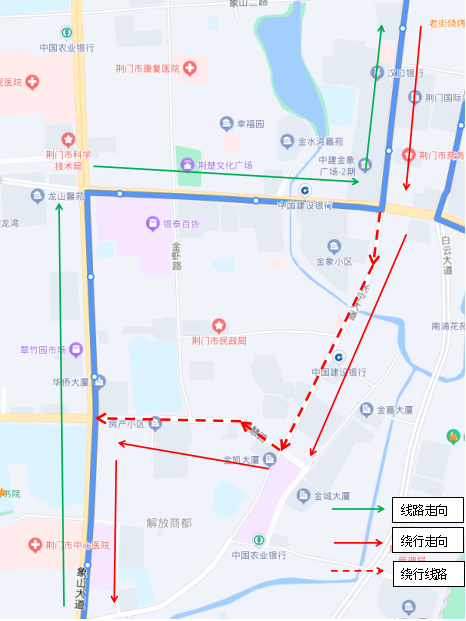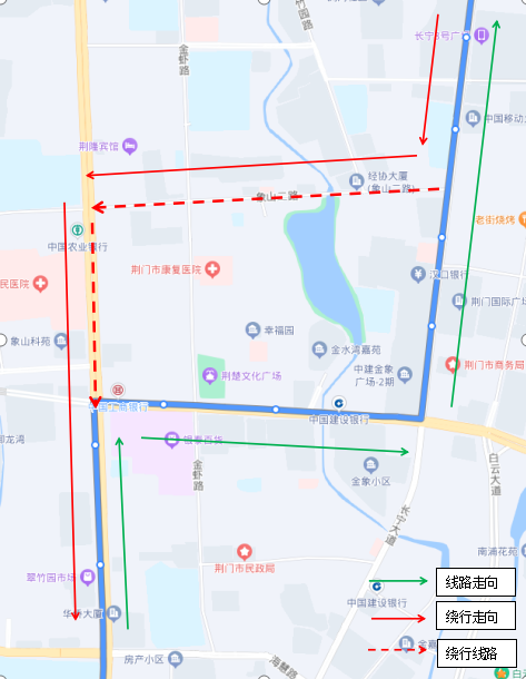 調(diào)整后新增??空军c:瀏河橋(西側(cè))、金寧小區(qū)(西側(cè))、荊門電視臺(西側(cè))、鳳臺社區(qū)(北側(cè))、?;壑袑W(xué)(北側(cè))。