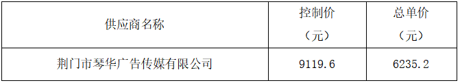 荊門市公共交通集團(tuán)有限公司2024年廣告開展設(shè)計制作類年度供應(yīng)商采購項目進(jìn)行了詢價,經(jīng)詢價小組評審?fù)扑],現(xiàn)將本次詢價的成交結(jié)果公布如下: